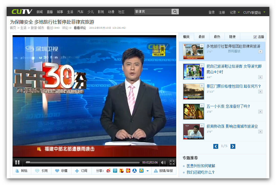 CUTV网站汇集各大城市电视台内容,视频来源丰富,信息量大,通过把热门事件的电视报道节目汇总成一个专辑的功能,可以对事情做全方位的展示和介绍,从而使网友获取的信息更全面和专业。