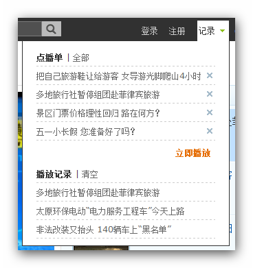 网友在访问网站的时候,对其看过的视频或文章,都会自动记录下来,可以在看过的记录中查找到。另外对于网站上出现的大量视频内容,可以自由挑选,组成一个视频联播单进行集中播放。