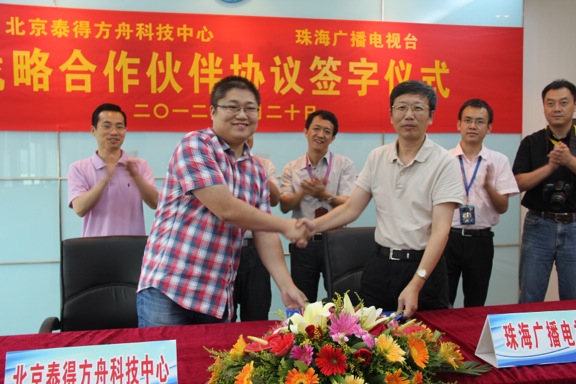 6月20日珠海广播电视台与泰得方舟(tidemedia)在珠海签署战略合作伙伴协议,共建珠海三网融合新媒体应用平台。自2011年与珠海广播电视台开展合作以来,泰得方舟(tidemedia)作为新媒体技术应用提供商为珠海广播电视台分布建设了网络应用内容管理平台(TideCMS)、移动应用平台、新媒体资源平台,针对互联网电视的应用正在建设中,泰得方舟(tidemedia)提供了传统电视台面向新媒体市场应用的一整套解决方案,“以最终用户体验为核心”、“本地化运营优势”等理念得到客户充分的认可。