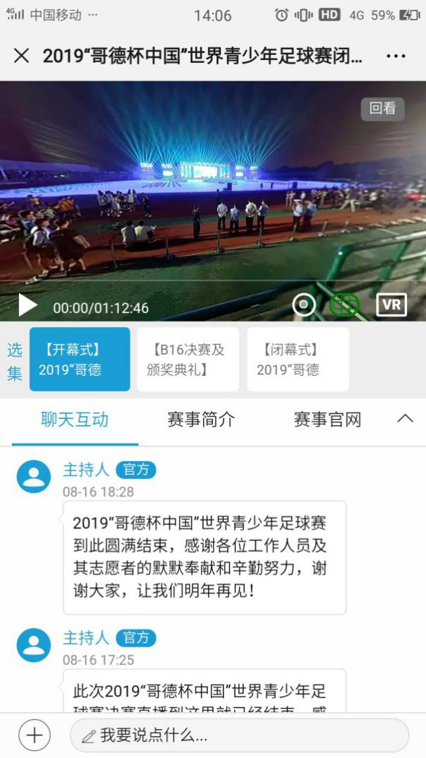 在刚刚结束的2019“哥德杯中国”世界青少年足球赛中,比赛全程采用5G+VR直播模式,聚现对此次赛事开幕、总决赛及闭幕式的直播提供了技术支持。实现了超清视频的全景采集,运用5G传输技术快速处理、分发,使得观众在观看直播的过程中,低延时观看8K超清画面,同时可以360度选择观看角度,每一帧画面都是一个360度的全景,相比4K高清画面,观看效果更清晰、更真实、更沉浸。直播结束后,同样片段展示VR回放,随时随地观看赛事精彩回看。