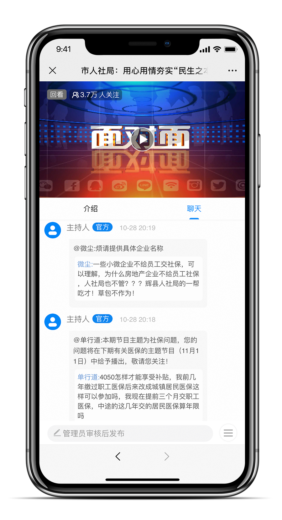 聚现媒体云服务平台为政民互动建立了“直达”的渠道,群众可以在视频下进行留言,与部门在线互动,有关部门可以进行留言回复或视频解答来解决群众问题,为执政者广开言路提供了便利条件,利于政民携手共创和谐发展氛围。