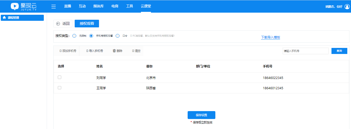 聚现云云课堂功能够帮助各央企、国企、中小企业快速解决线上培训落地问题,随时随地进行培训,实现学员移动学习,培训成本低,培训人员针对性强,有效帮助各企业提升员工业务能力、技能绩效。