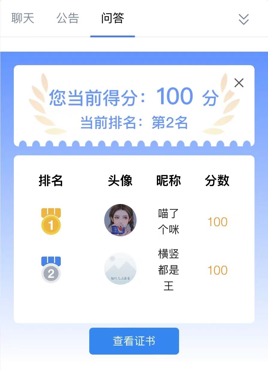 学员答完考试题后,系统会自动算总分,支持显示学员总分排行榜,达到及格分数线的学员会获得通过培训的证书,证书支持下载。