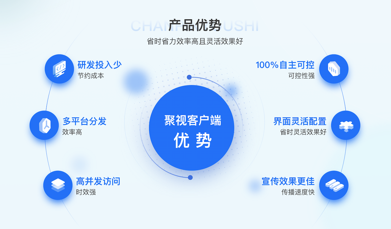 多平台分发: 聚视支持多平台分发,大幅提升业务效率。运营者可更便捷高效的完成传播分发任务,实现更全面的业务覆盖。