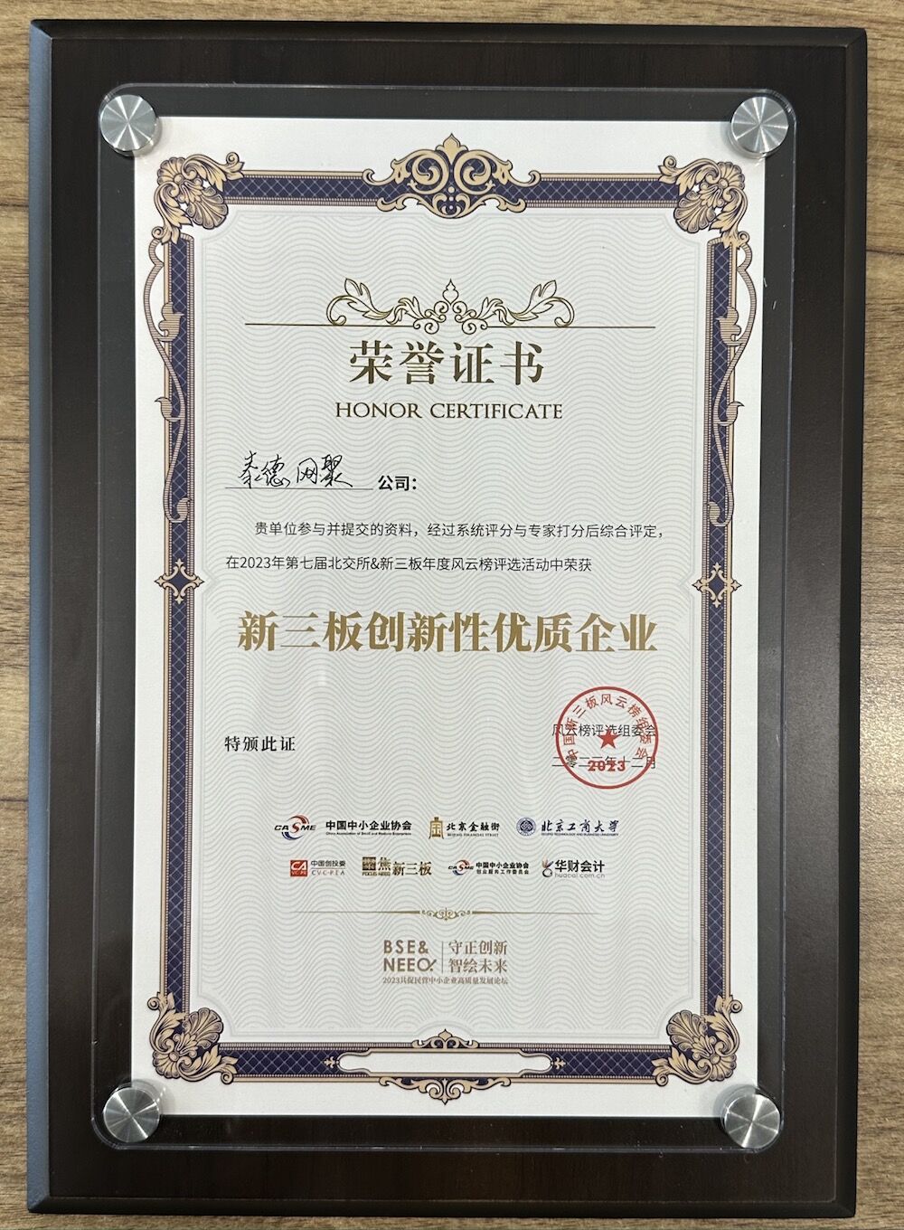 2023年12月28日,泰德网聚出席“守正创新 智绘未来”2023共促民营企业高质量发展论坛,并在第七届中国北交所&新三板年度风云榜盛典新三板荣获新三板创新能力企业奖项!