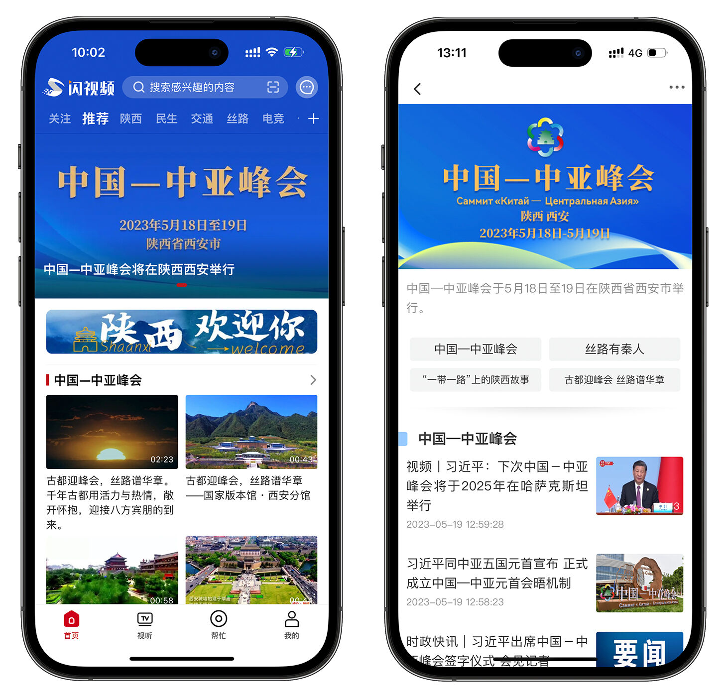 “西安这座千年古都正以崭新的面貌喜迎贵宾的到来。”陕西省副省长叶牛平表示。陕西广播电视台作为官方媒体单位,通过其线上APP客户端“闪视频”,不仅设置了独立专题页面,更新传播习近平总书记的指导和思想方针、会议动态以及实时资讯,还在专题内嵌入多样化的媒体形式,如短视频等,来介绍展示西安古城的特色文化和人文风景,彰显当地文旅风采的魅力。用户进入“闪视频”端内,即可看到中亚峰会的新闻推荐,轻松获取全面的国家重大活动消息,并且能够进入活动专题,更加详尽的了解活动资讯。