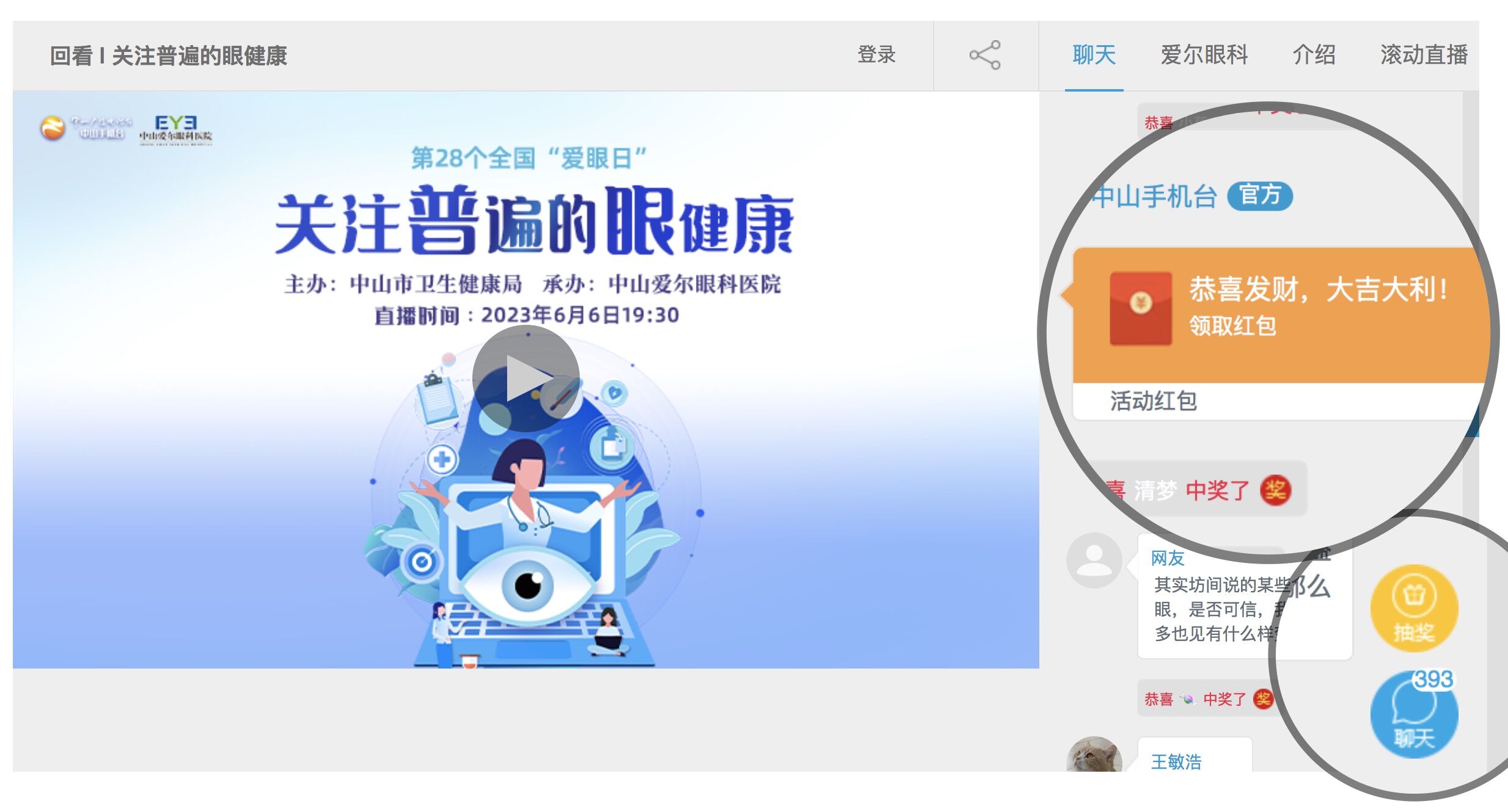 2022年,《“十四五”全国眼健康规划 (2021-2025年)》的发布再次将青少年近视防控聚焦于众人关注的热点。在信息化时代,如何科学有效地预防近视问题已成为每个人所关注的普遍话题。中山市卫生健康局与中山爱尔眼科医院联合,通过聚现云直播平台举办了“关注普遍的眼健康”主题科普直播,进行眼健康知识科普。