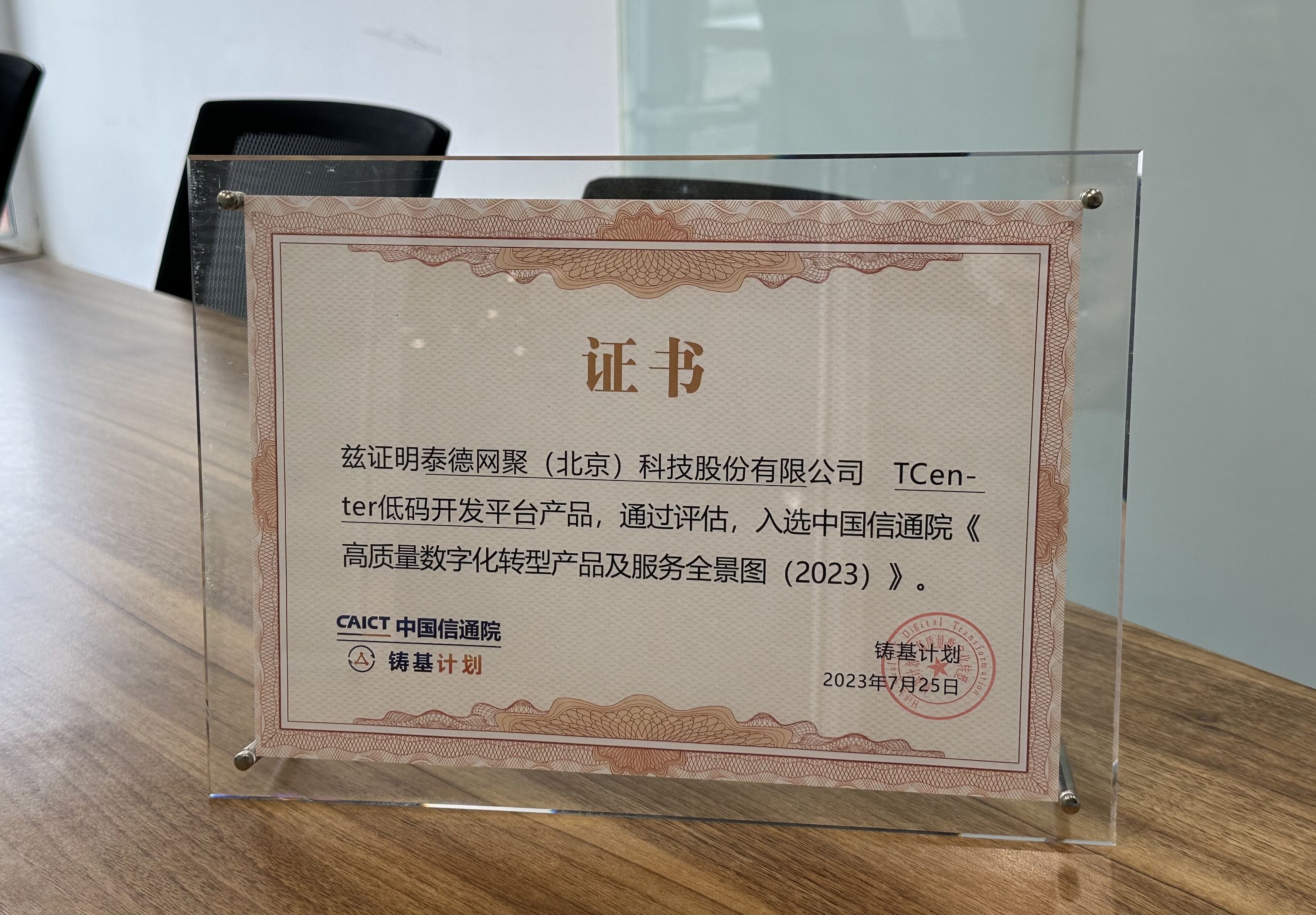 集合多优势,泰德网聚TCenter低码开发平台脱颖而出,入选“高质量数字化转型产品及服务全景图”。